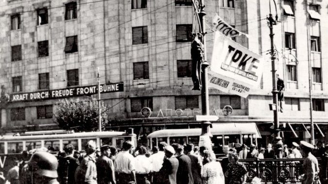 Dok su Beograđani nemo posmatrali jezive prizore, Terazijama je prodefilovala grupa folksdojčera, a jedini se javno usprotivio slikar i deklarisani anarhista Savo Popović koji je uhapšen, prebijen i umro u zatvoru.