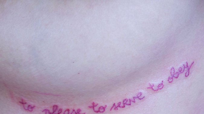 Marina Marković u svojim radovima telo postavlja u središte kao prostor u kojem se iscrtavaju osnovni antagonizmi ženskog postojanja. Ono nije samo biološka datost, već i kulturni konstrukt i mesto upisa društvenih normi. Kroz pastelne tonove i precizne linije umetnica gradi kontrast između „lepo upakovane” spoljašnjosti i surovog ženskog iskustva, pokazujući da estetizacija bola ne znači njegovo poricanje, već transformaciju u smisao i identitet. Telo se tako pojavljuje i kao svedočanstvo granica nametnutih uloga, ali i kao prostor njihove moguće subverzije.