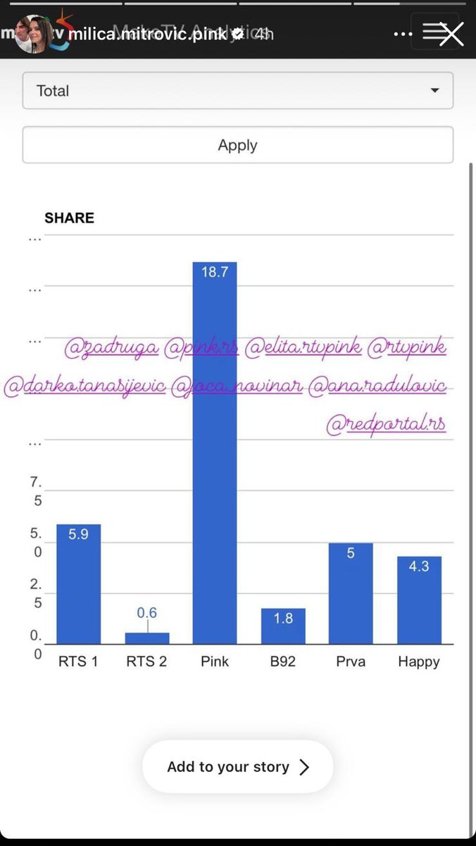 Ove rezultate je podelila direktorka programa Televizije Pink Milica Mitrović putem svog Instagram naloga, ističući postignuti uspeh. ☝