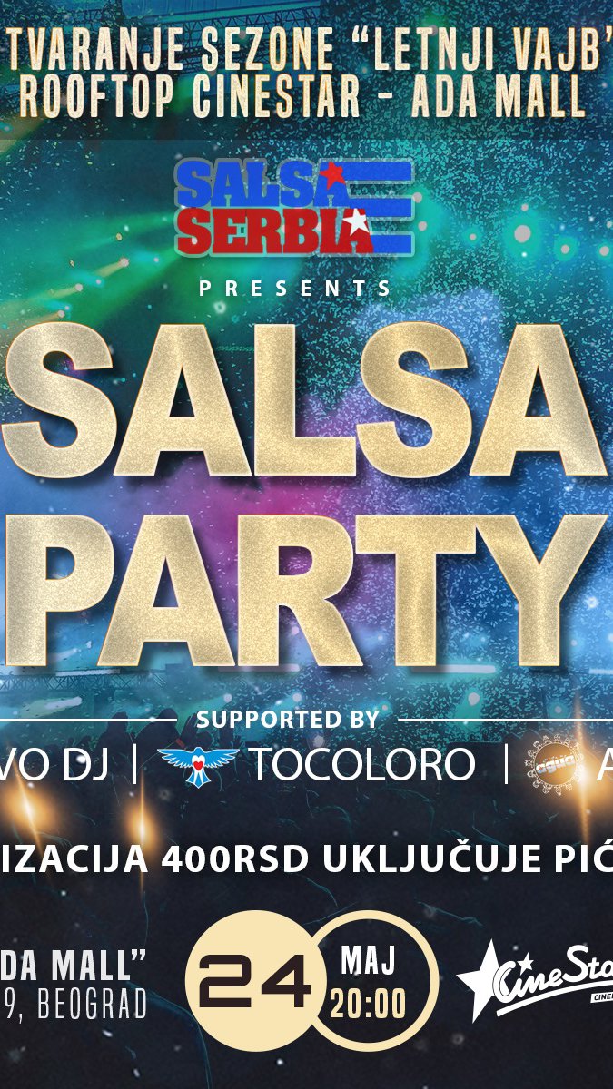 Za sve ljubitelje plesa, u Beogradu počinju večeri salse, koje će se organizovati tokom leta na terasi bioskopa CineStar (4. sprat, Ada Mall - Rooftop). Prvo Salsa veče uz Letnji vibe zakazano je za 24. maj u 20.00, kada posetioce očekuje ritam i strast kubanske muzike, bilo da je neko početnik ili iskusni plesač. Posebna atrakcija je činjenica da će se plesati pod otvorenim nebom, uz jedan od najlepših pogleda na grad. 😍💃