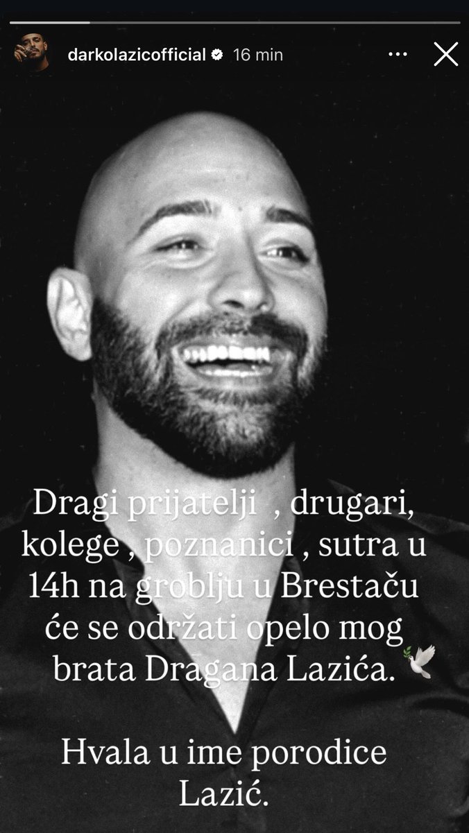 Darko Lazić je na Instagramu objavio fotografiju brata Dragana i obavestio javnost o sahrani.