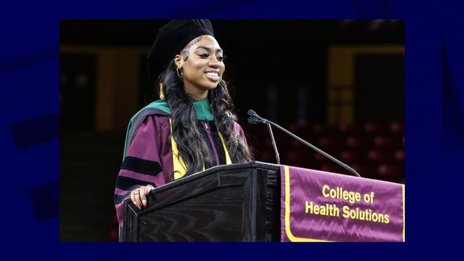 Većinu predavanja je pratila onlajn, ali je došla na ceremoniju dodele diploma u Arizoni, gde je održala i govor. 🎉