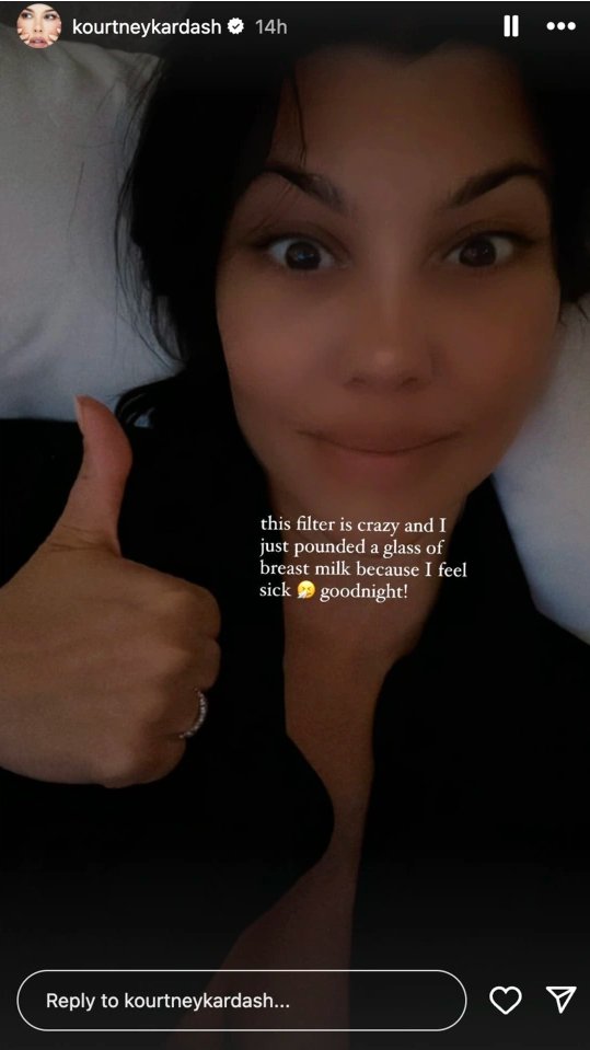 Naime, Kortni je na Instagramu objavila stori na kom je napisala da je "sebi sipala čašu majčinog mleka jer je bolesna". 🥛