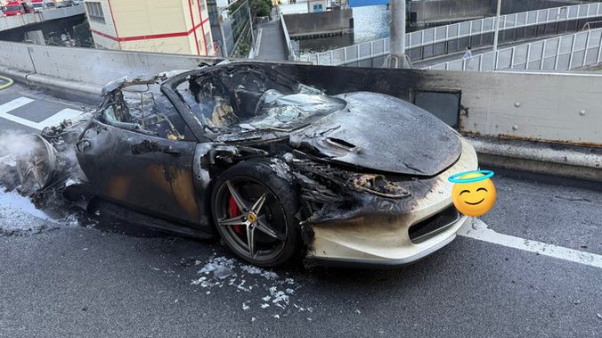 Nakon što je deset godina štedeo kako bi sebi priuštio automobil iz snova, potpuno novi Ferrari 458 Spider, japanski muzički producent Honkon ostao je zatečen kada je luksuzno vozilo planulo i izgorelo tokom njegove prve vožnje.