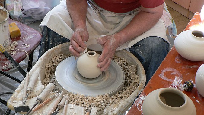 Ovaj zanat se nekada isključivo radio samo ručno pa je trebalo više vremena da se napravi posuđe. Sa pronalaskom grnčarskog točka, postupak izrade predmeta je znatno brži.