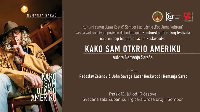 Istog dana, u 19 časova u Svečanoj sali Županije biće održana promocija knjige Nemanje Sarača Kako sam otkrio Ameriku (Biografija Lazara Rajića Rockwood-a) u izdanju Kulturnog centra Laza Kostić.