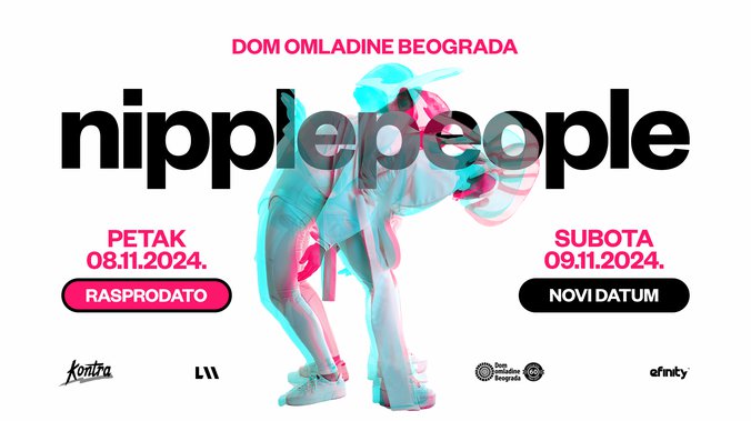 Nipplepeople poznati su po zaraznim melodijama i mističnim scenskim nastupima, a dva beogradska koncerta deo su njihove aktuelne regionalne turneje, na kojoj će publika uživati u najvećim hitovima poput Sutra, Frka, Broj, Ne volim te, Balkan Express, Tajna, kao i u novim pesmama, u prepoznatljivom stilu izvođenja ovog enigmatičnog dua.