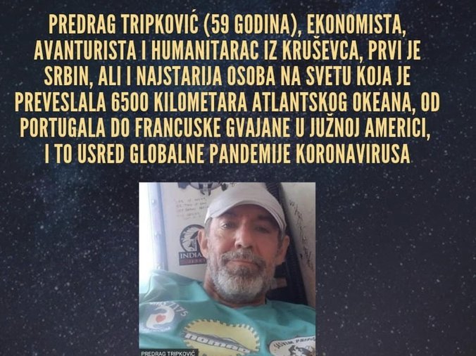 Predrag Tripković (59) je ekonomista, avanturista i humanitarac iz Kruševca koji se 4. marta 2020. godine uputio sa ekspedicijom u osvajanje Atlantskog okeana.