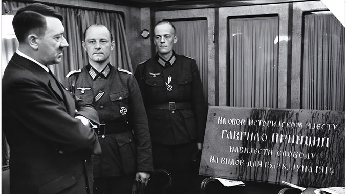 Naime, oni su mu 20. aprila za 52. rođendan odneli spomen-ploču sa mesta gde je Gavrilo Princip ubio Franca Ferdinanda i to mu predali u jednom vozu u Štajerskoj.