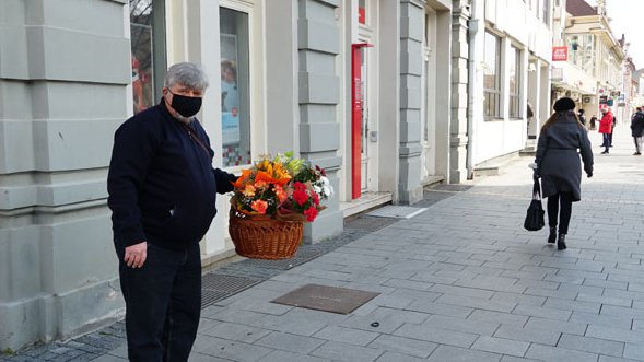 Među gospodom koja luta gradom u potrazi za savršenim cvetom za svoju damu, ovaj portal naleteo je i na jednog svog sugrađanina koji je u ruci imao punu korpu cveća. Gospodin je poklon namenio radnicama jedne banke u centru grada.