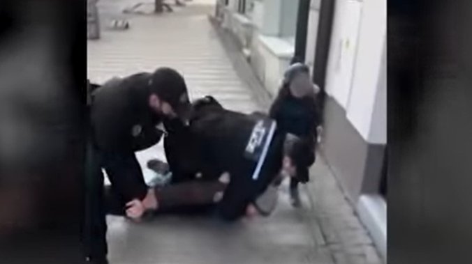 Čeh je bio sa detetom u šetnji kada ga je policija zaskočila jer nije ispoštovao mere i odlučila da ga privede. U sledećem trenutku, oborili su ga na pločnik i legli preko njega dok je dete neutešno plakalo.
