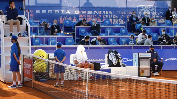 Kako je prethodno padala kiša, koja je pomerila meč, Nole je u pauzama malo hladio glavu zbog sparine. 🥵 😁