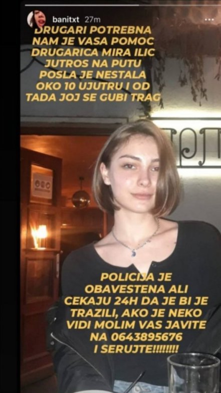 MIRA Ilić (20) nestala je jutros u Beogradu.