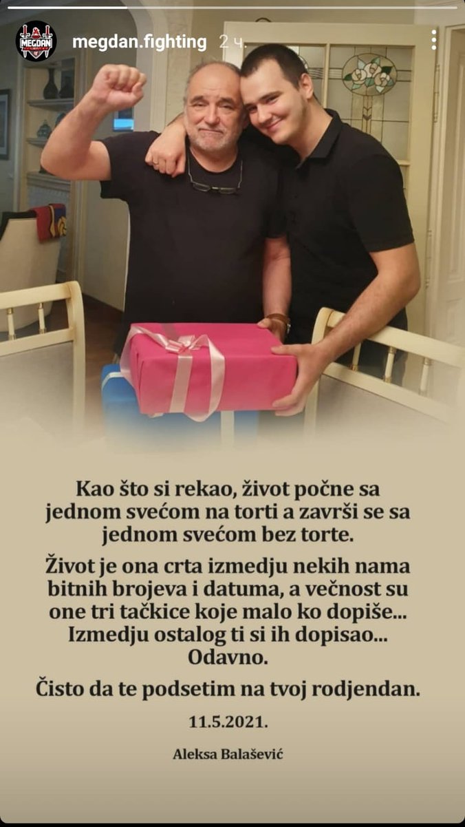 - Kao što si rekao, život počne s jednom svećom na torti, a završi s jednom svećom bez torte. Život je ona crta između nekih nama bitnih brojeva i datuma, a večnost su one tri tačkice koje malo ko dopiše... Između ostalog ti si ih dopisao, odavno. Čisto da te podsetim na tvoj rođendan - napisao je Aleksa uz fotografiju ispod: