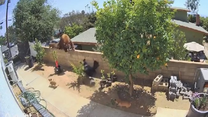 Naime, na snimku možemo videti medveda koji se popeo na ogradu njenog dvorišta, sa 2 mečeta! Kako je zver ugledala pse koji su pritrčali i počeli da laju, počela je da zamahuje šapom!