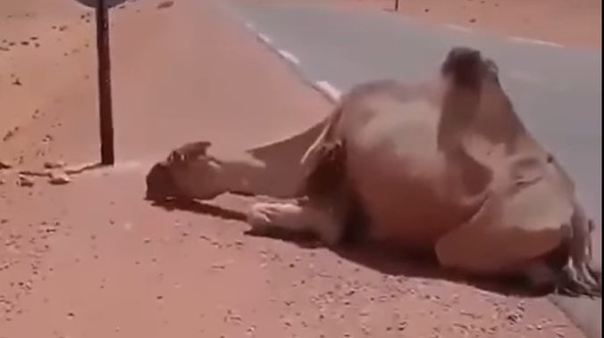 Kada je video da kamila leži po žezi na suncu vozač kamiona se zabrinuo da kamila nije uginula jer nije davala znake života. Tek kad joj je prišao video je da je ona zapravo veoma žedna i da zbog žeđi ne može da se pomeri.