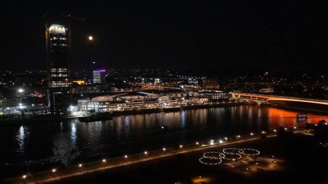 Naime, reč je o osvetljenim olimpijskim krugovima koje formiraju japanske trešnje u parku između Brankovog mosta i Gazele.