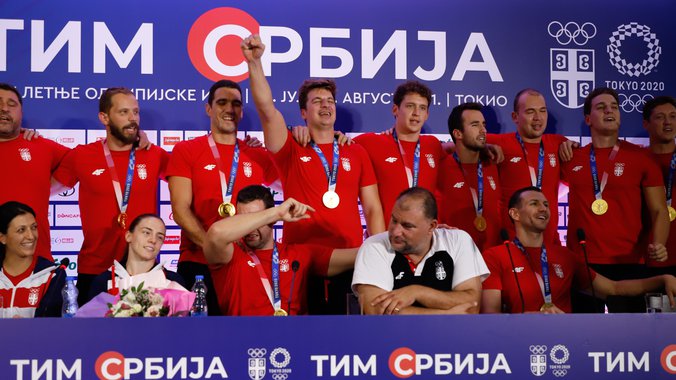 Zlatna generacija vaterpolo reprezentacije Srbije stigla je u Beograd gde je u toku konferencija za medije.