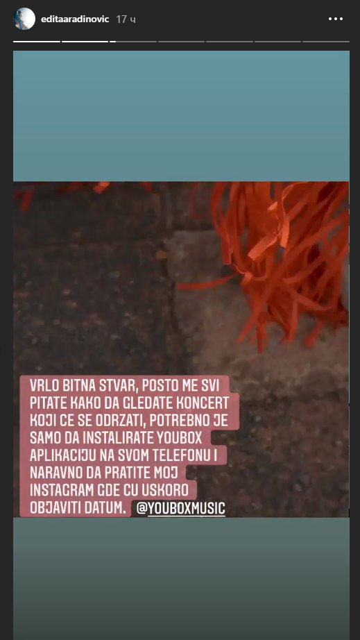 Edita je dala uputstva svim zainteresovanim fanovima koji žele da prate koncert. Potrebno je instalirati aplikaciju YouBox na telefonu, a pevačica će naknadno obavestiti o tačnom datumu dešavanja.