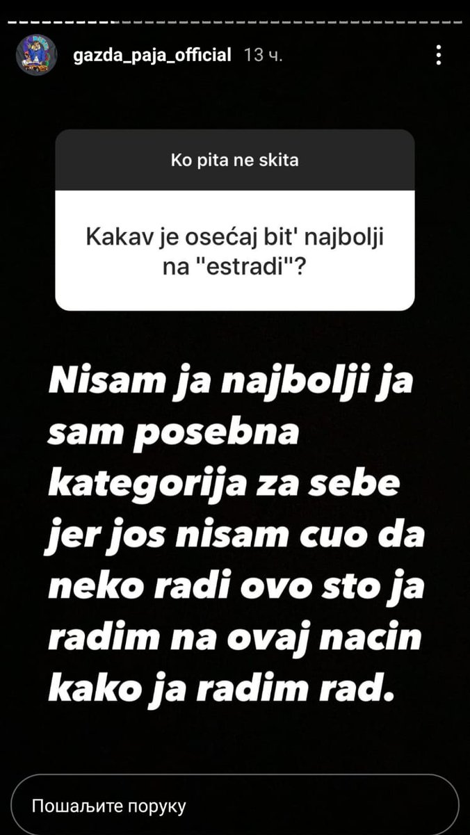 Neki tvrde da je on najbolji na estradi, što je Paja negirao. On nema tako visoko mišljenje o sebi, već misli da je on jedini koji se bavi muzikom na ovaj način i da se još uvek nije pojavio neko ko radi isto.