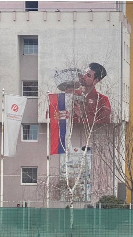 Građani Severne Kosovske Mitrovice pored zastave koje su mu poklonili dokazali su da su ponosni na Novaka i muralom sa peharom Roland Garosa su mu odali priznanje i pružili podršku.