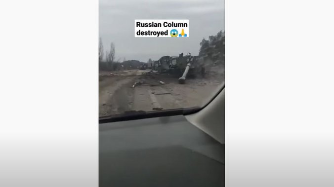 Vozila pripadaju ruskim oružanim snagama, jer su označeni sa "Z", kojima su Rusi označili svoje trupe kako bi se razlikovali od ukrajinskih snaga koje koriste istu ili sličnu vojnu opremu. U pitanju je bila kolona artiljerijskog oruđa. Na snimku se vidi da j uništeno pet vozila i nekoliko haubica.