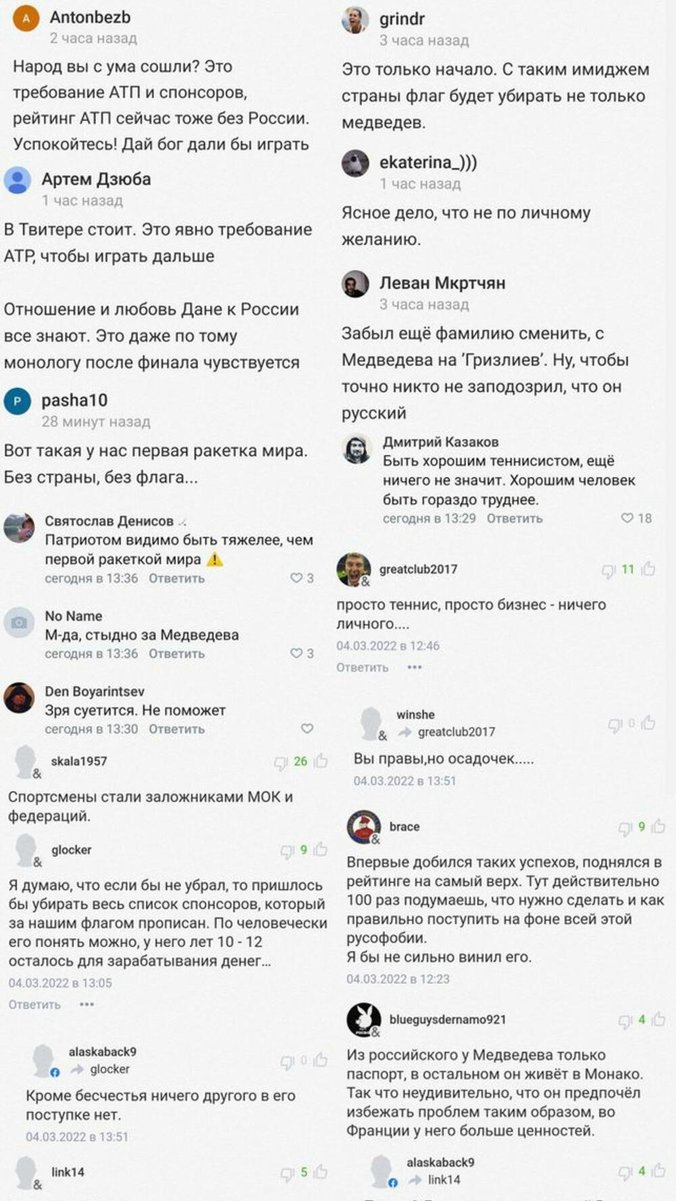 Kako piše Kurir Predsednik Ruske teniske federacije (RTF) Šamil Tarpiščev smatra da je Danil Medvedev uradio jedino moguće što je mogao, jer ruski sportisti trpe do sada neviđeni pritisak iz sveta zbog specijalne intervencije njihove vojske u Ukrajini.