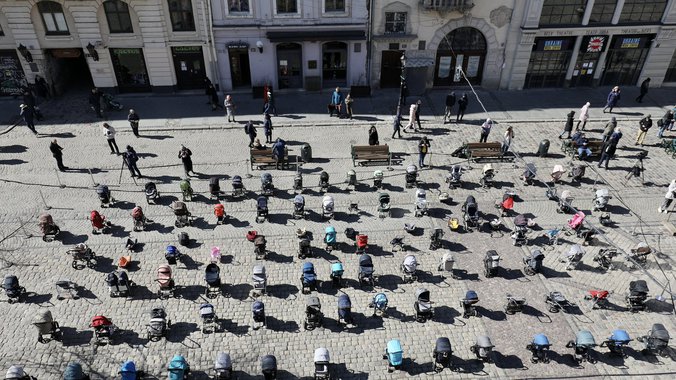 Empty prams on Rynok Square today symbolize the lives of little angels. They are now defending Ukraine’sky instead of decisive actions of the world. pic.twitter.com/x4sIs8fAbh