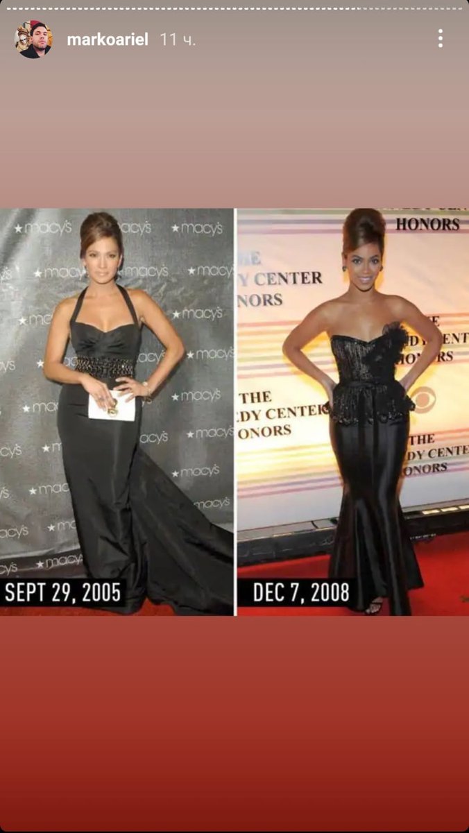 Modni dizajner Marko Marosiuk na svom Instagram storiju podelio je nekoliko slika obe pevačice i pokazao da je Bijonse ipak ta koja kopira. 😅
