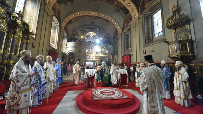 U Sabornoj crkvi u Beogradu u toku je sveta arhijerejska liturgija koju služe patrijarh srpski Porfirije i arhiepiskop makedonsko-ohridski Stefan sa vladikama obe crkve.