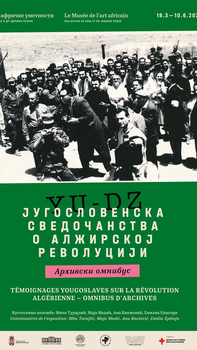 Izložba „Jugoslovenska svedočanstva o Alžirskoj revoluciji – arhivski omnibus“ biće otvorena u subotu, 18. marta u 12 časova u Muzeju afričke umetnosti (Andre Nikolića 14, Senjak). Kustosi izložbe su Mila Turajlić, Maja Medić, Ana Knežević i Emilia Epštajn.