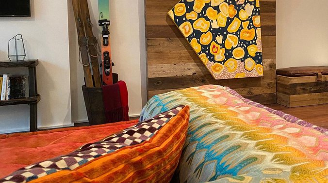 Paleta duginih boja preplavljuje toplo osvetljeni stan, sa smelim umetničkim delima koji se nalaze u svakom uglu. Kao i njen stil oblačenja, Hadid je smelo kombinovala šarene sofe Missoni, jastuk Jean Paul Gaultier i zidne slike sa većim komadima nameštaja u tamnoj smeđoj koži i belom mermeru. Zidovi su ostali beli kako bi se istakao šareni dekor nameštaja. U nastavku pogledajte slike unutrašnjosti stana Điđi Hadid:
