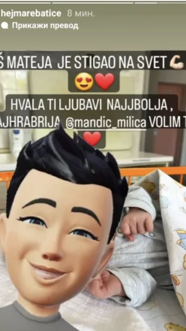- Naš Matej stigao na svet. Hvala ti Milice ljubavi, najbolja i najhrabrija. Volim te! - napisao je njen suprug Marko na Instagram storiju.