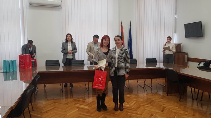 Jana Tomašević, maturantkinja XIV beogradske gimnazije, pročitala je sve pohvaljene i nagrađene rečenice, a profesorka Vesna Lompar uručila je nagrade prisutnim učenicima i njihovim mentorima.