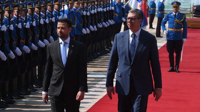 Predsednik Srbije Aleksandar Vučić danas je dočekao u prvoj zvaničnoj poseti predsednika Crne Gore Jakova Milatovića.