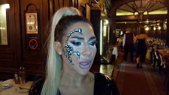 Naime, Jovana je sinoć nosila uzani komplet u crnoj boji i sandale, dok je na licu imala poseban detalj. Reč je o crtežu škorpije, što je njen horoskopski znak, a nacrtan je uz pomoć mejkapa. 👇🧐🦂