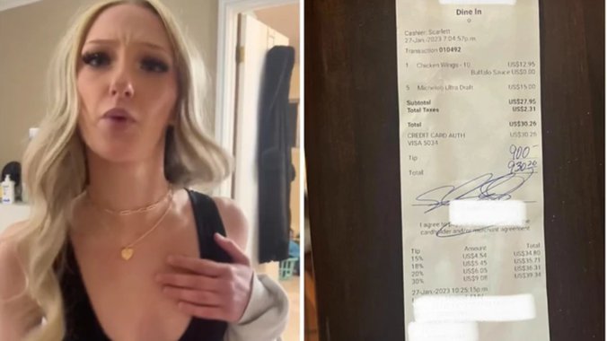 Ukupan iznos je dostigao 30,26 dolara, međutim, mušterija je na kraju dodala neverovatnih 900 dolara (oko 835 evra) napojnice. Skarlet je ovo dokumentovala slikom računa.