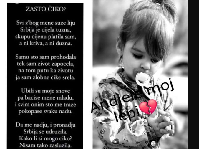 Baka tragično nastradale Danke Tatjana Ilić se i putem društvenih mreža oprostila od svoje unuke objavivši njenu fotografiju uz stihove koje cepaju srce.
